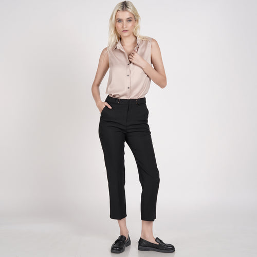 • Lennon Mandarin Collar Vest Blouse with Flap Pockets and Silver Buttons