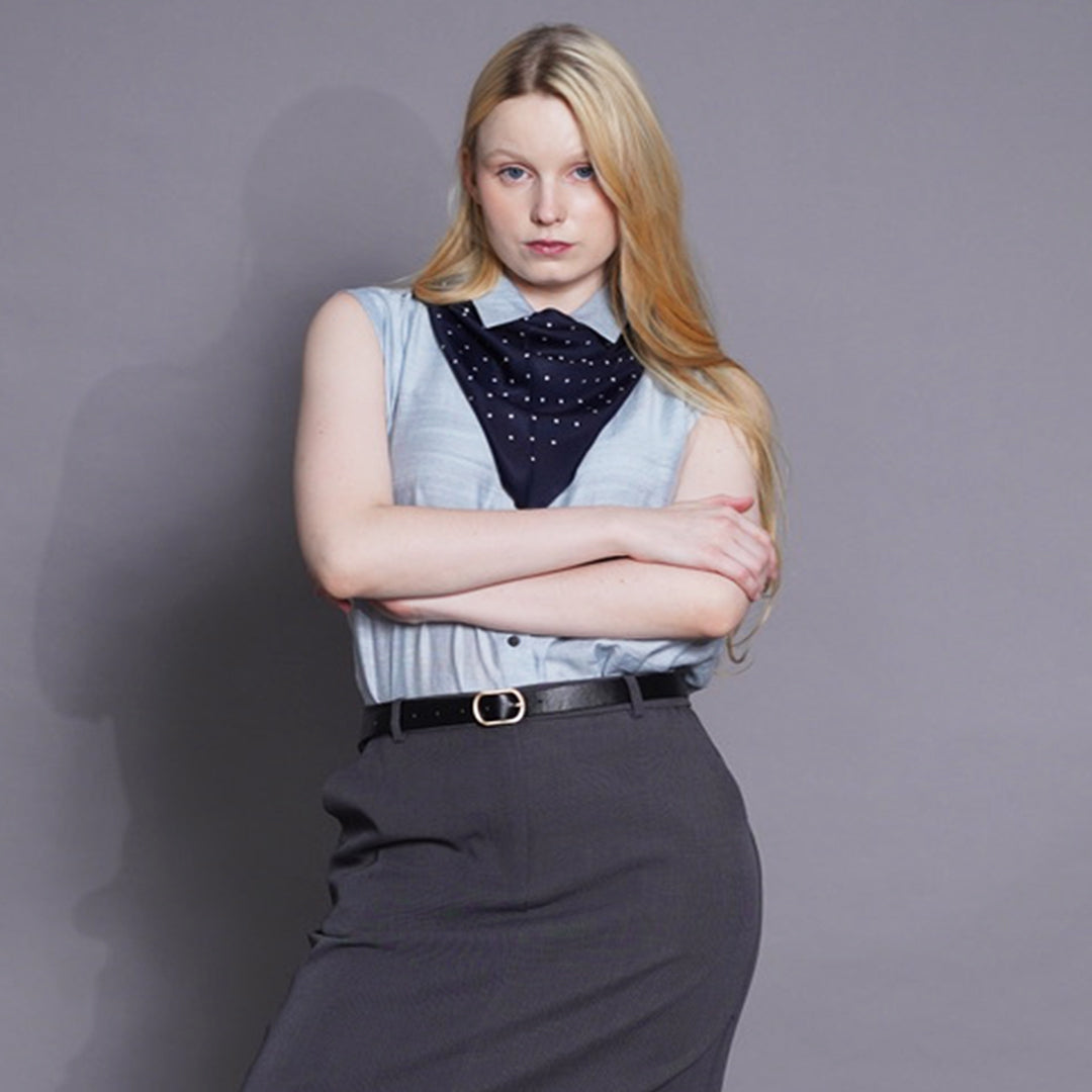 This scarf presents a bold and contemporary aesthetic. Its dominant black hue provides a dramatic backdrop for the striking patterns.