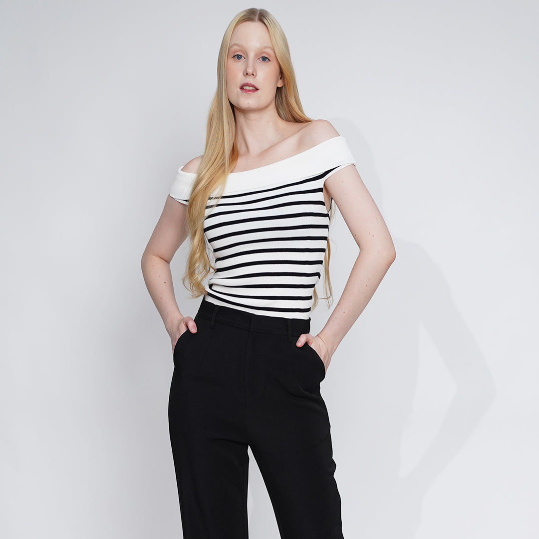 Make a chic statement with this off-the-shoulder blouse, designed to elevate your everyday style. The relaxed fit through the body drapes beautifully, making it an ideal choice for both casual outings and more dressed-up occasions.